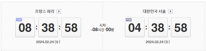 파리와 서울 사이의 시차는 서울이 파리보다 8시간 앞서 있습니다. 즉, 서울이 오후 4시라면 파리는 오전 8시입니다.