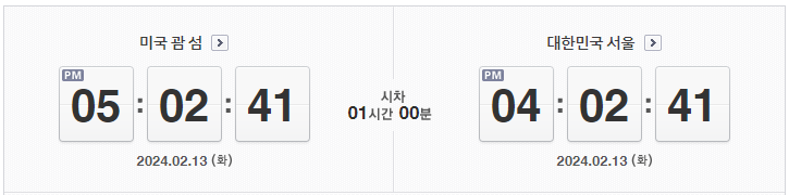 예시로, 괌 오후 5시는 대한민국 오후 4시입니다.