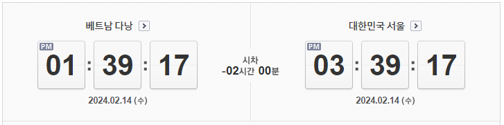 대한민국 서울과 베트남 다낭 간의 시차는 실제로 2시간입니다. 서울은 한국 표준시(UTC+9)를 따르고, 다낭은 베트남 표준시(UTC+7)를 따르기 때문에 시차가 2시간입니다. 한국 오후 3시라면 베트남 다낭은 오후 1시입니다. 베트남이 2시간 늦습니다.