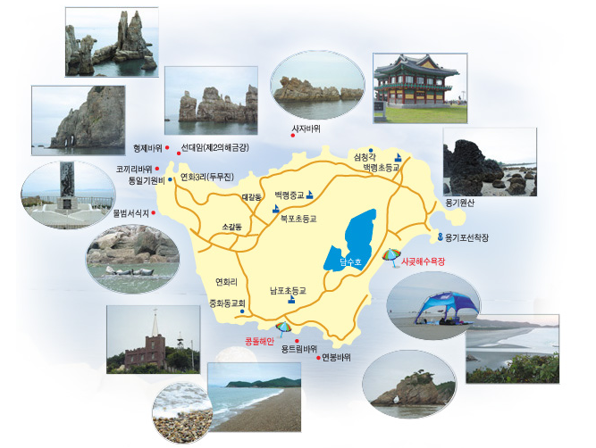 백령도 남포동 오금포 남쪽해안을 따라 약 1㎞정도 형성되어 있는 콩돌해안은 백령도의 모암인 규암이 해안의 파식작용에 의한 마모를 거듭해 형성된 콩만한 크기의 자갈돌해변이다.