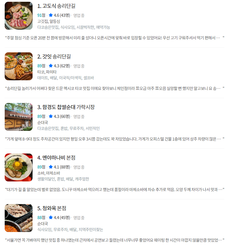 6. 송파책박물관 주변 맛집