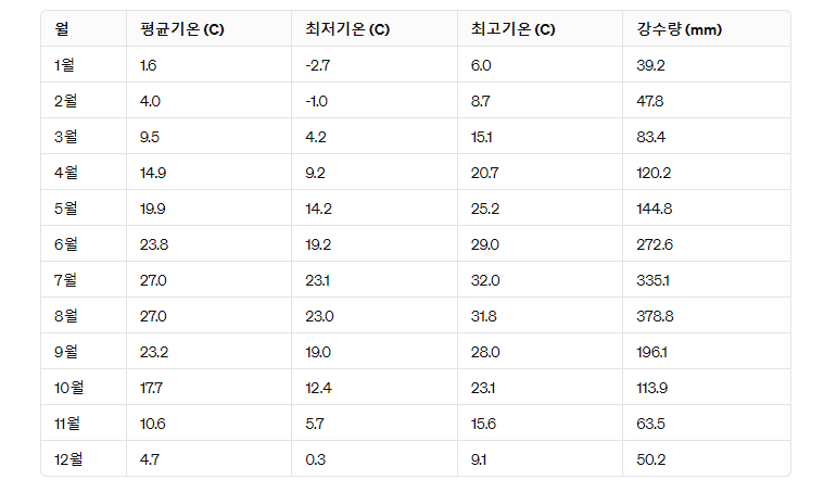 순천 날씨 및 자유여행 정보 (옷차림 포함)