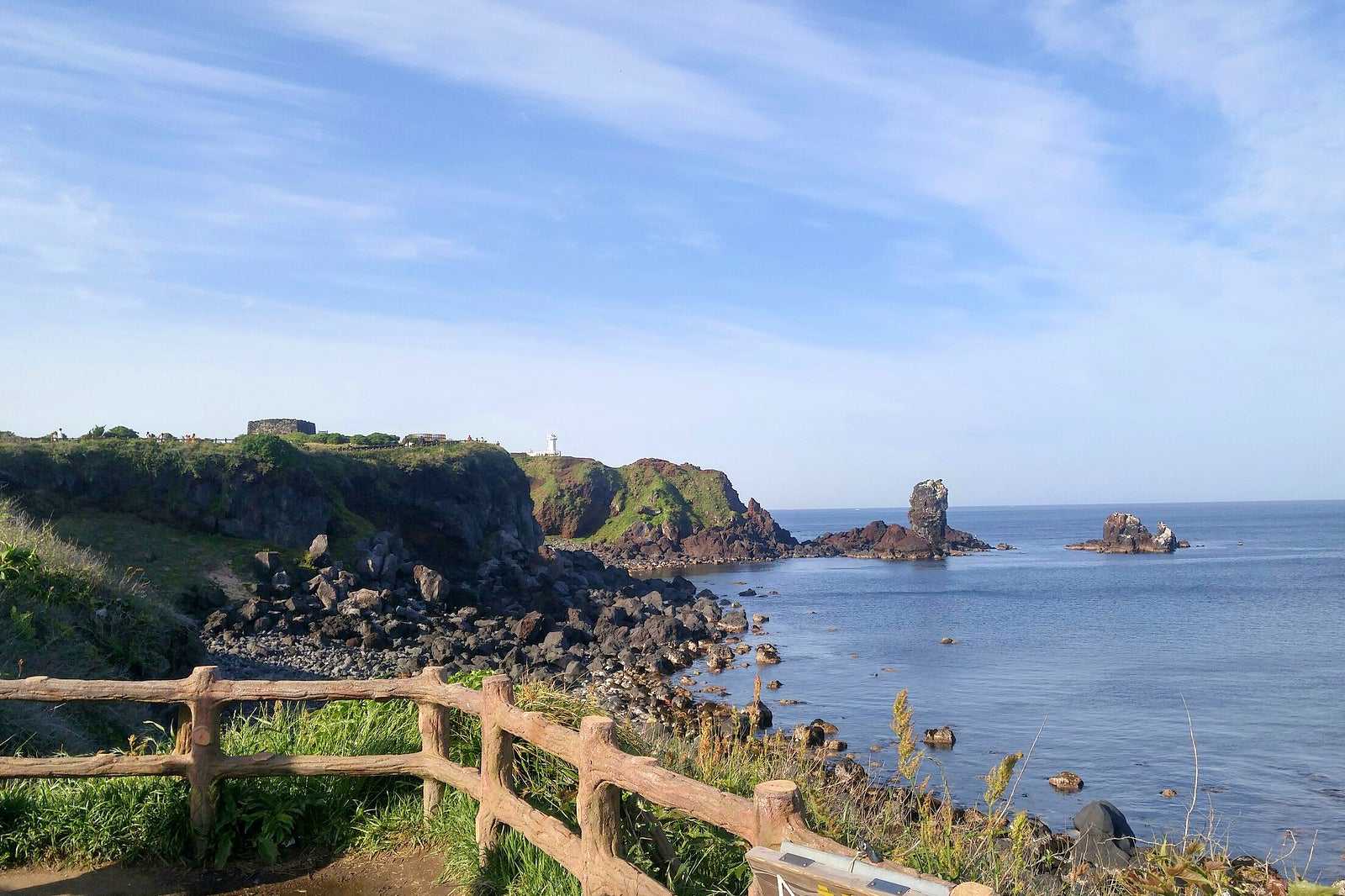 섭지코지의 코지는 바다로 돌출되어 나온 지형을 뜻하는 곶의 제주 방언이에요. 서귀포시 성산읍 신양리에 있는 약 2km 해안가 절경이죠. 섭지코지 끝에 있는 언덕의 등대에 오르면 성산 일출봉을 배경으로 펼쳐진 푸른 바다와 기암괴석으로 덮인 해안 절경을 감상할 수 있어요.