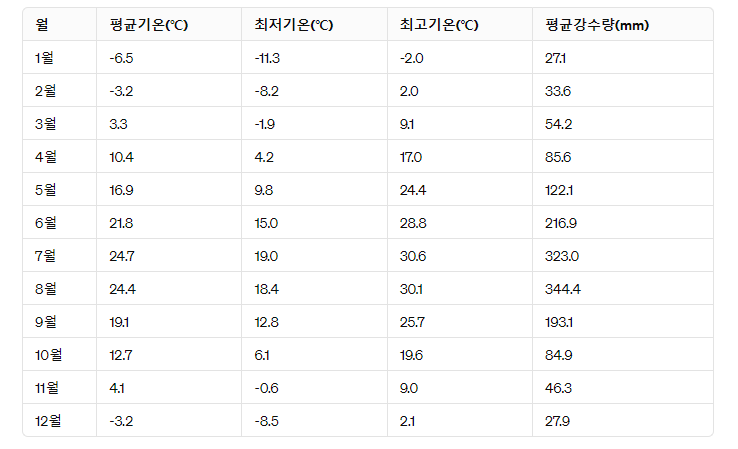 - 평균 기온: 대략 20°C에서 25°C 사이