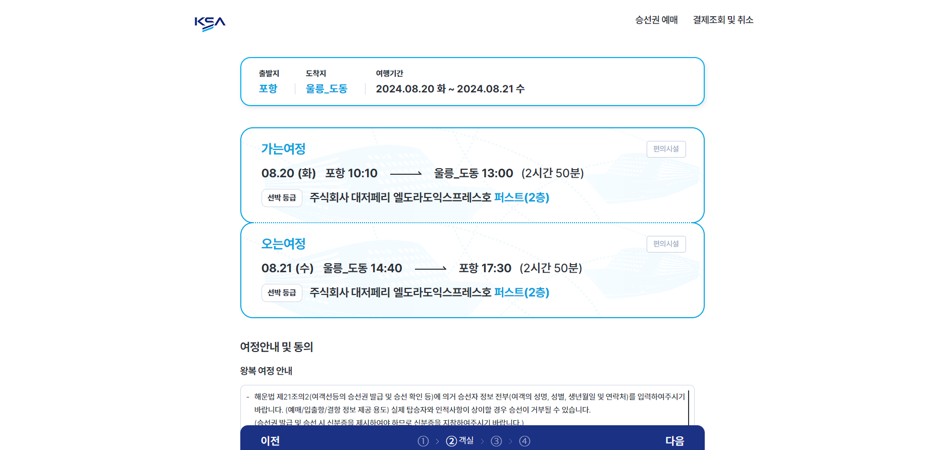 인원을 먼저 선택하고, 인원수에 맞게 승객 정보 역시 입력합니다.