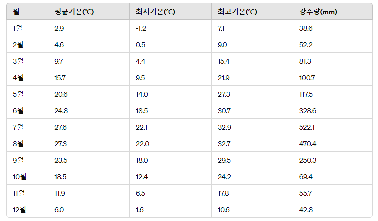 여름에는 더운 날씨가 지속되며, 평균 기온은 25도에서 35도까지 올라갈 수 있습니다. 습도가 높아 더욱 더 더욱 더울 수 있습니다.