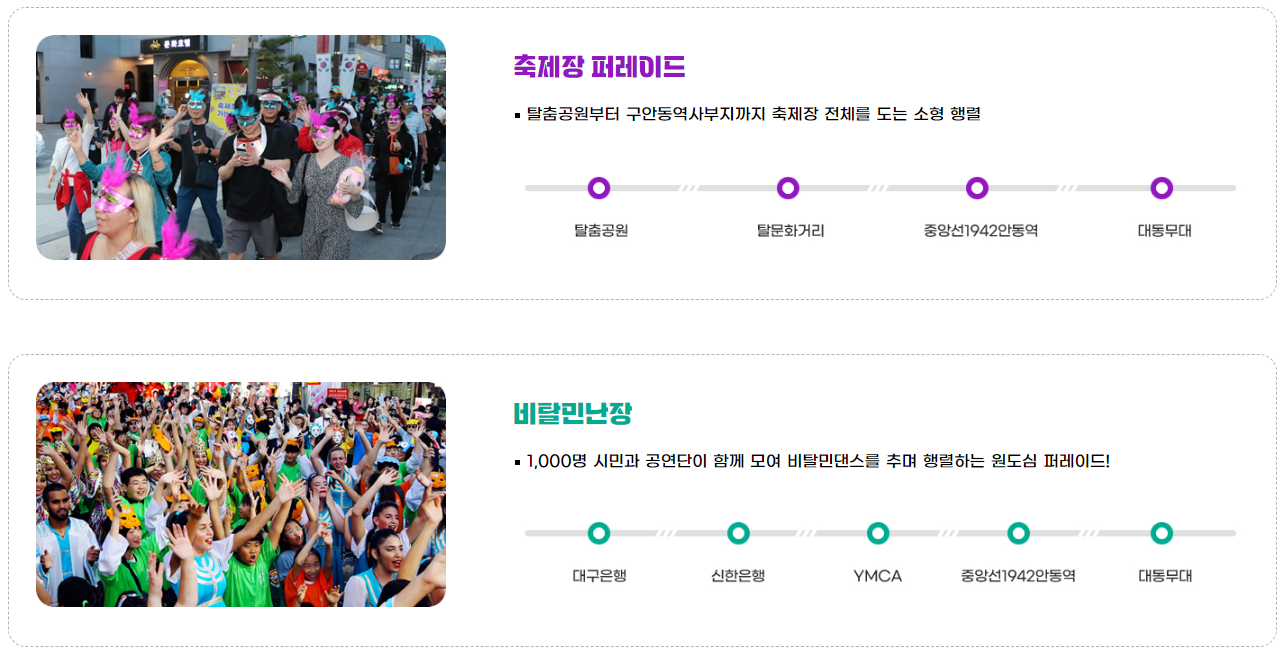 - 장소: 탈춤공원, 중앙선1942안동역, 원도심, 하회마을 등