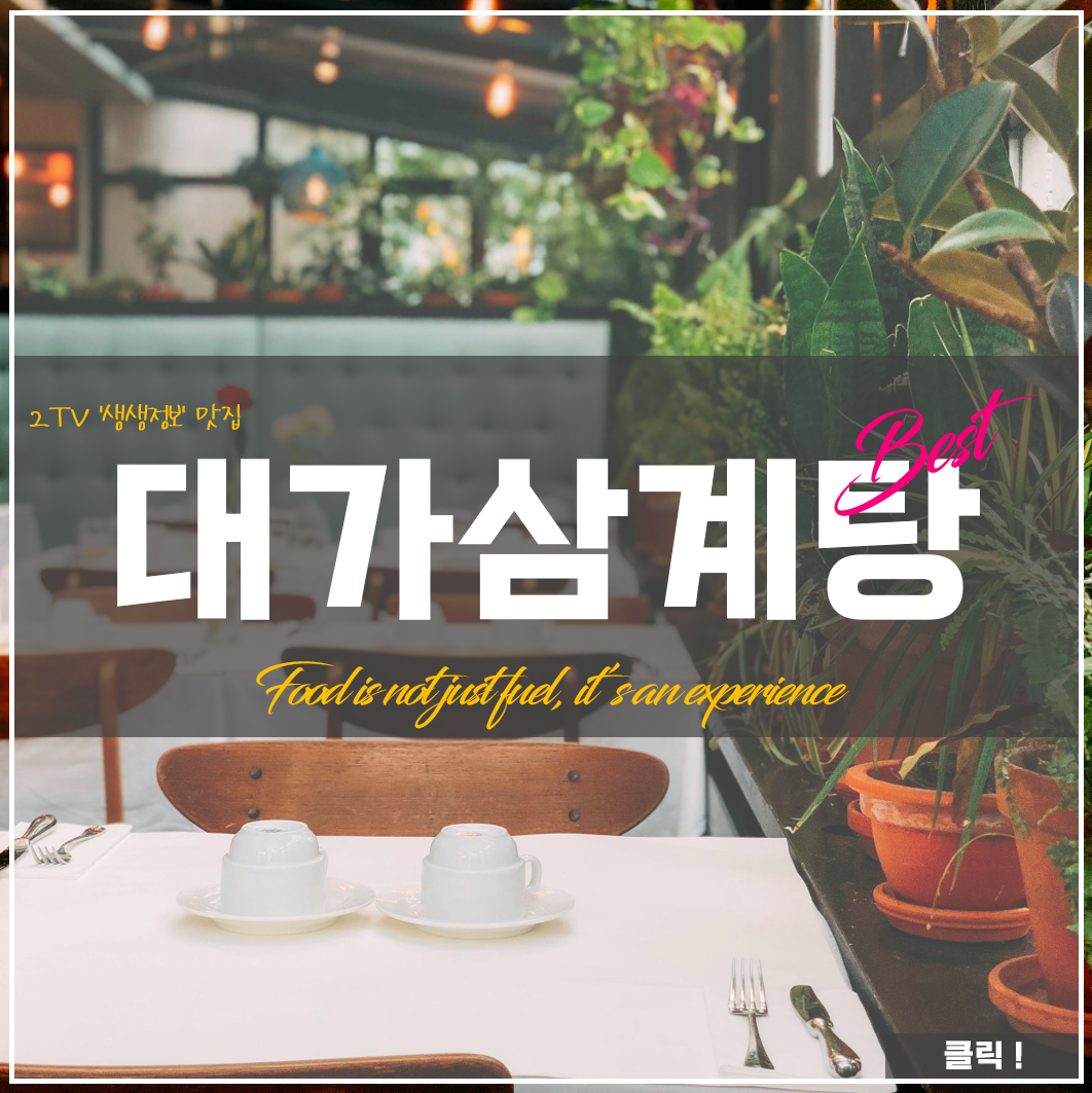 대가삼계탕 '생생정보'의 '고수의 부엌' 코너에서 소개된 대가삼계탕의 매장 위치, 전화번호, 영업시간 및 브레이크 타임 등의 정보는 아래에서 확인하시고 방문해 보세요!