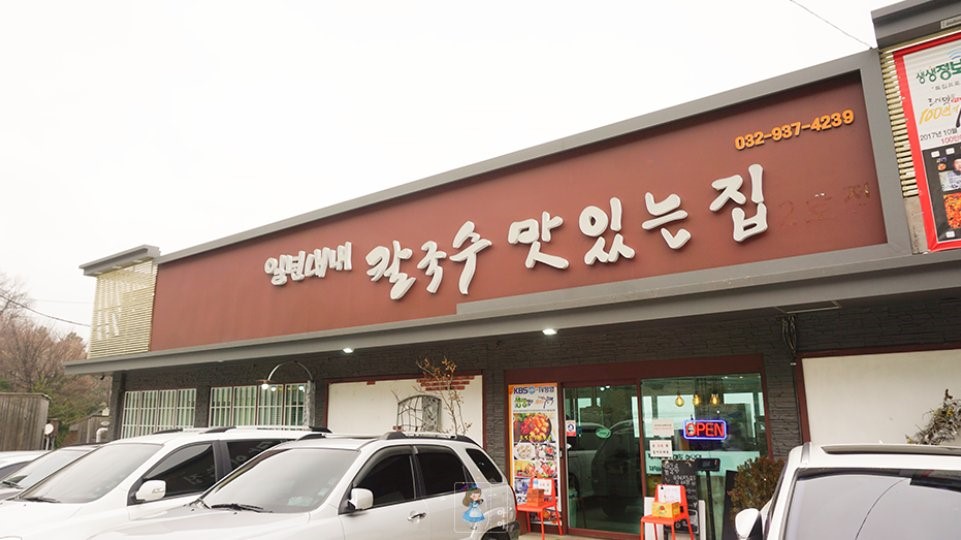 이곳은 인천 강화도에 위치한 '일년내내칼국수맛있는집'으로, 매일 반죽하여 손으로 꾹꾹 누른 손칼국수가 인기라고 합니다.