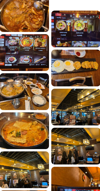 테이블과 좌석 배치가 정돈되어 있어 편안한 식사 환경이 조성되어 있으며, 직원분들도 친절하여 맛있는 식사를 즐기기에 좋습니다. 대표 메뉴인 수제 햄부대찌개와 매운 돼지갈비찜이 특히 인기가 많습니다.